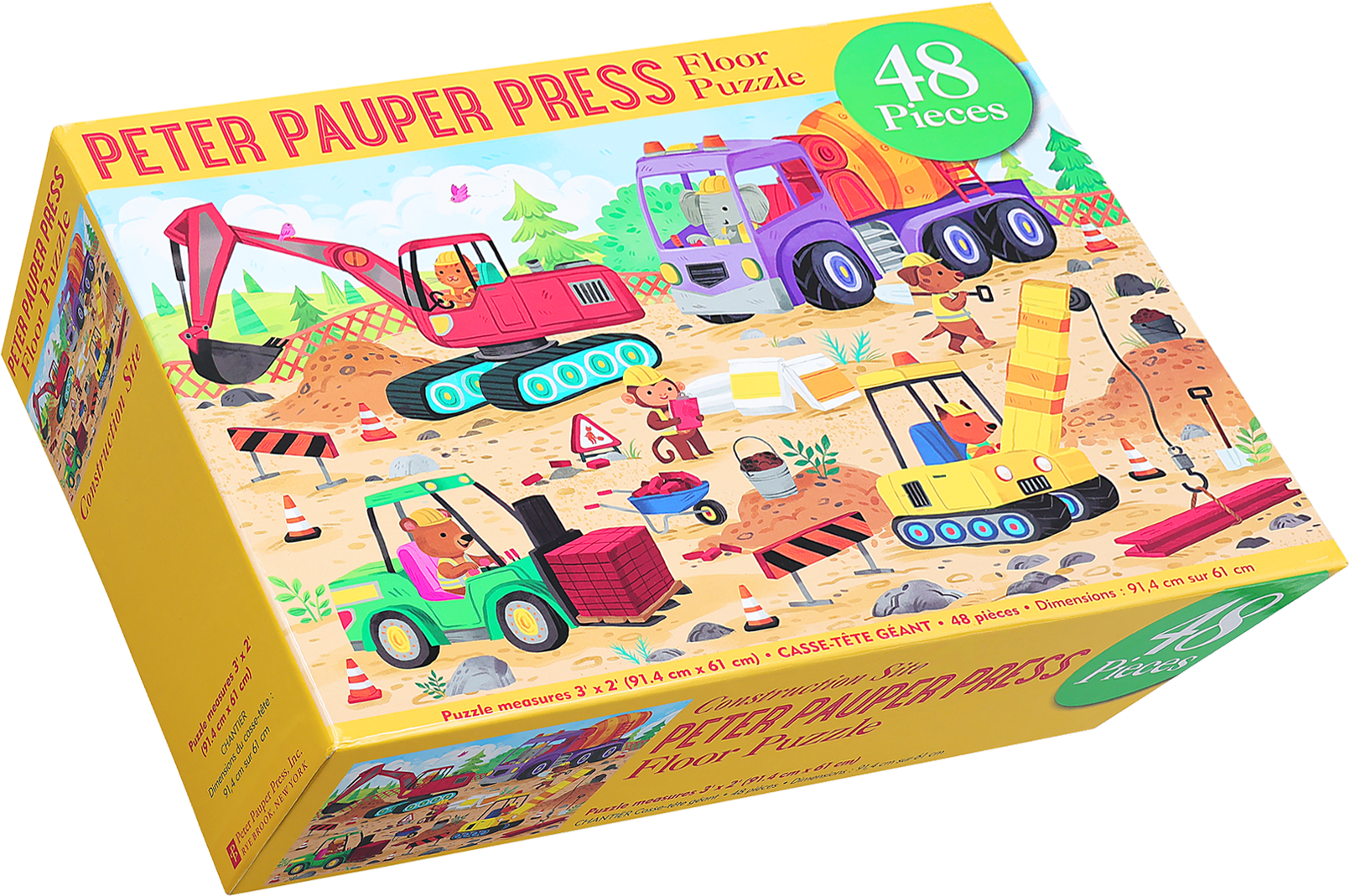 Stretch out, have fun, and be challenged by this jumbo-sized Construction Site Kids' Floor Puzzle! Explore the exciting world of heavy equipment! Vivid full-color puzzle image will immerse your child in an awesome construction site! 48 big, precision-cut puzzle pieces! Extra-thick pieces are perfect for little hands! Perfect for ages 3 and up. Puzzles help develop problem-solving skills, too.