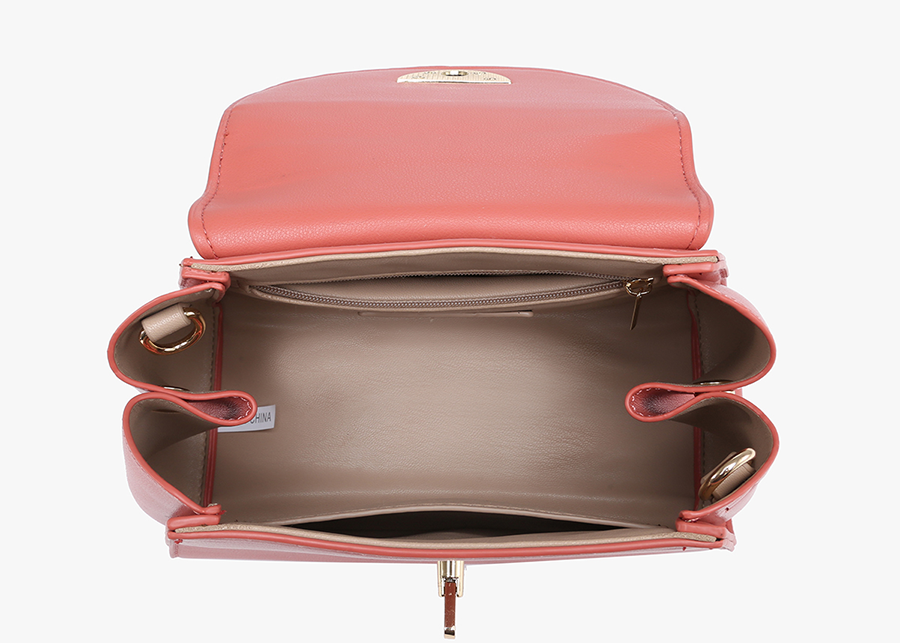Item Details: Small satchel - Twisted metal/vegan leather top handle - Snap and twist- lock closure - Adjustable/removable strap - Inner slip and zip pockets - Gold-tone hardware -Made of vegan leather
